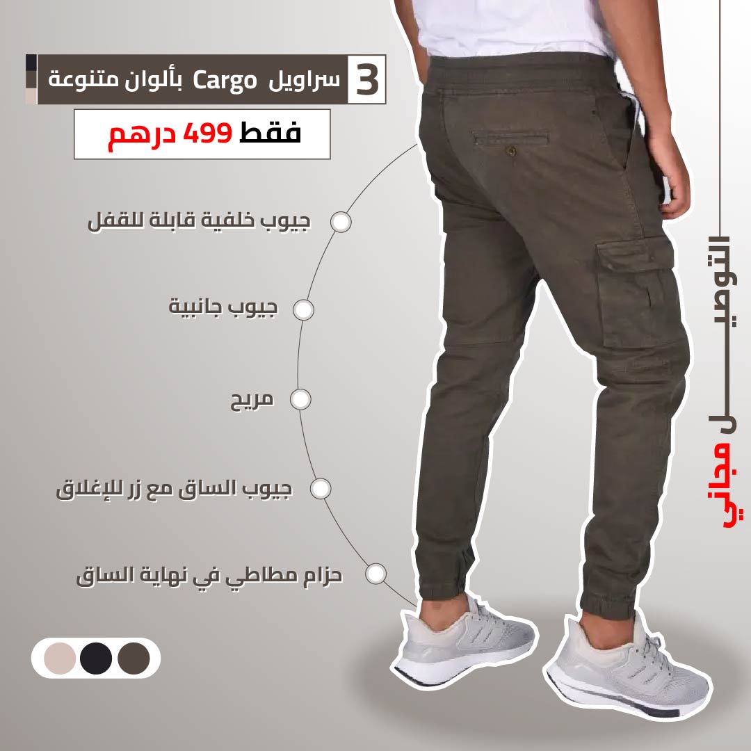 احصل على باك مكون من ثلاث بناطيل Cargo عالية الجودة، مستعدة لتلبية أسلوبك العملي والعصري في آن واحد: